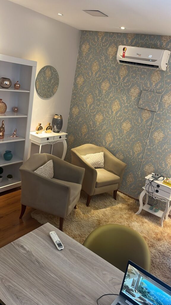 Meu consultório fica localizado no Edifício i9, na avenida T9, no Jardim América, na cidade de Goiânia. Lá temos uma recepção confortável e um consultório aconchegante para receber você. O agendamento é feito direto comigo pelo WhatsApp. As sessões são semanais com duração de 50 minutos.